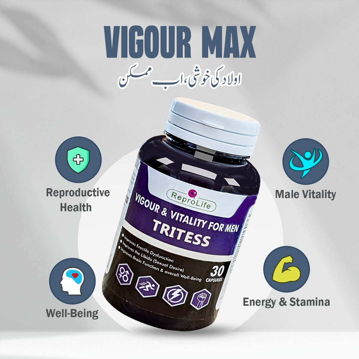 VIGOUR MAX (Tritess) is carefully formulated to support men’s overall wellness and vitality. It features a blend of 7 key ingredients, including Tribulus Terrestris, traditionally used to help maintain natural balance and promote well-being.